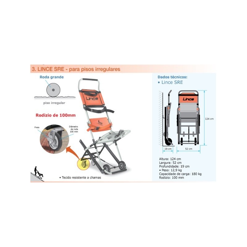 A cadeira LINCE SRE, para pisos irregulares possui as seguintes características técnicas: