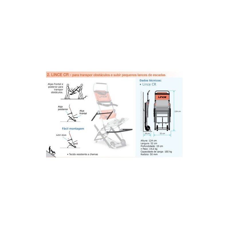 A cadeira LINCE CR, para pisos irregulares possui as seguintes características técnicas:
