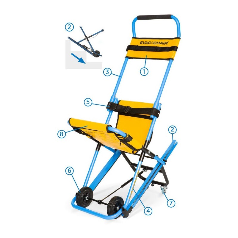 A Cadeira de emergência EVAC + CHAIR® 300H (MK4) é uma solução altamente inovadora para cadeiras de que permite a saída segura de pessoas com mobilidade reduzida de um prédio em caso de emergência ou evacuação.