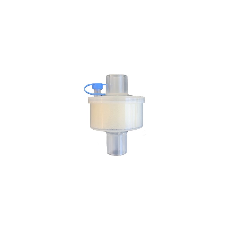 Filtro Trocador de Calor e Umidade Conexão Reta 22M/15F-22F/15M. Com tampa e conector luer lock para monitorização. Estéril e embalado em papel grau cirúrgico. Descartável. Uso adulto. Disponível em dois tamanhos: 55ml e 73ml.
