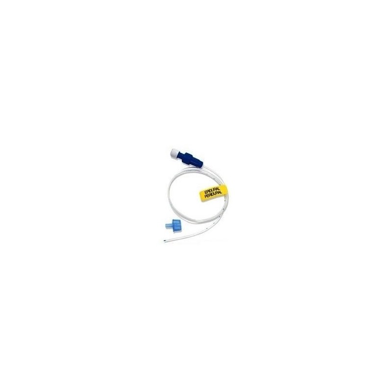 Cateter de nylon transparente com ponta radiopaca, fechado na ponta, 3 olhos laterais: * 16G com 1,1mm de diâmetro externo, priming de 0,25ml; * 18G com 0,9mm de diâmetro externo, priming de 0,19ml. Ambos com 900 mm de comprimento, marcas de 50 a 150 mm x 10 mm e em 200 mm a partir da ponta. Cateter epidural graduado, um conector de cateter epidural Luer lock, um guia para o cateter e o rótulo para identificação do cateter.