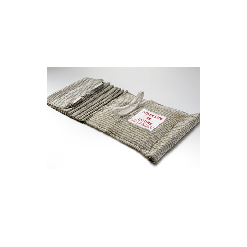 ATADURA DE EMERGÊNCIA ESTERILIZADA, COM PRESSÃO DIRETA SOBRE A FERIDA, MULTIFUNCIONAL PARA TRATAMENTO DE HEMORRAGIAS TRAUMÁTICAS EM EMERGÊNCIAS. |