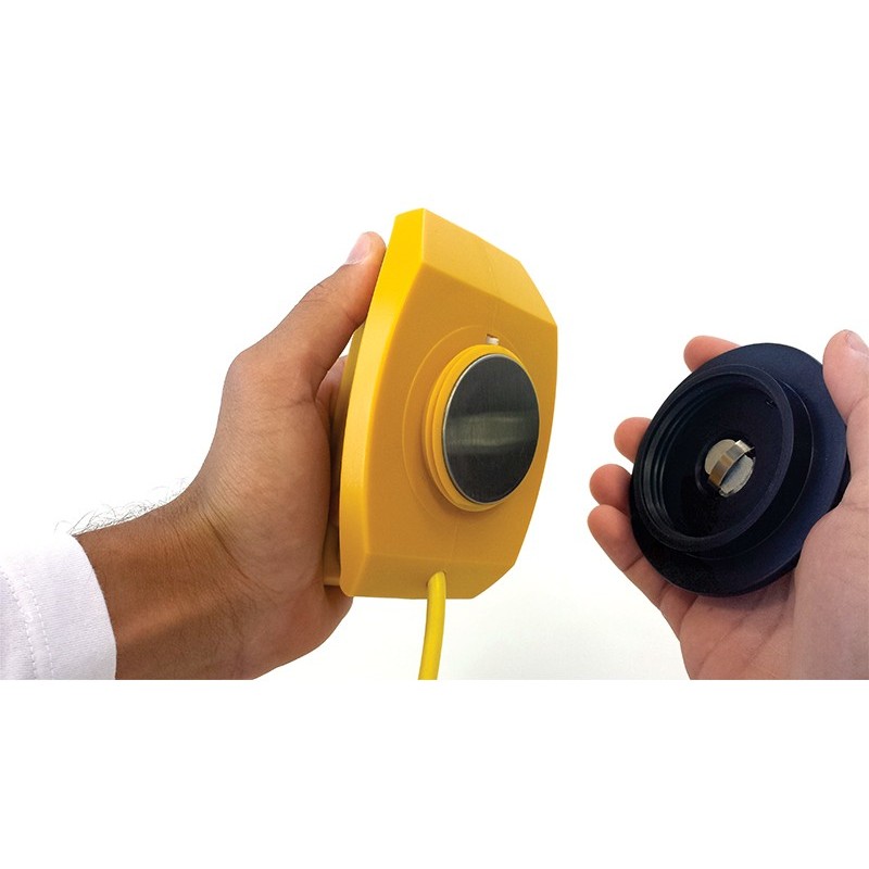 Utilização de eletrodos reutilizáveis (pás permanentes adulto / infantil), intercambiáveis, que requer ativação simultânea dos dois controles, sendo um em cada pá, minimizando o risco de choques acidentais.