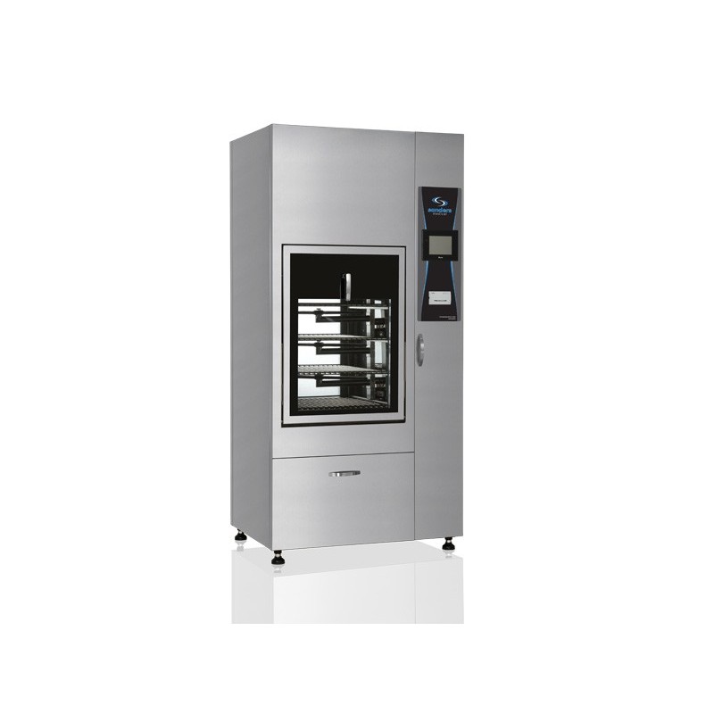 | • Equipamento totalmente em aço inox 304 e 316; • Capacidade de 290 litros; • Porta em vidro para visualização e acompanhamento do processo de limpeza; • Carregamento fácil do equipamento, com porta deslizante. • Braços aspersores de líquidos sem contato com materiais e cobrindo toda a área de limpeza; • Possui 12 programações, sendo 6 pré-programadas e 6 abertas para programação do usuário; • Volume de água consumido por fase: 20 litros; • Rack para 8 cestos DIM; • Visor: Touchscreen Colorido, que permite o acompanhamento do ciclo; • Impressora para documentação do processo; • Alarmes de segurança com indicação visual e sonora para baixa temperatura, falta de água, abertura da porta, falta de detergente e sistema de proteção contra superaquecimento; • Trava Porta: Elétrico; • Alimentação: 220Vac ou 380Vac ~ 60Hz Trifásico; • Saída USB para coleta de dados (opcional).
