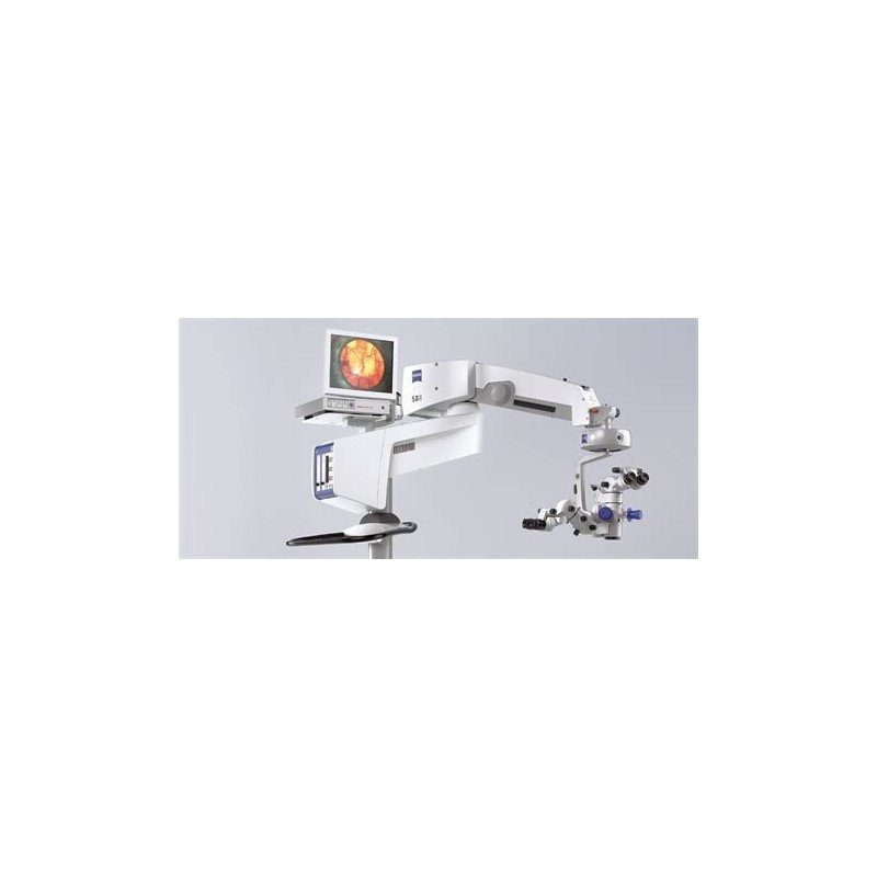 Um microscópio cirúrgico com iluminação coaxial estéreo (SCI). Mesmo com olhos fortemente pigmentados, descentrados e ametrópicos, produz uma visualização de alta resolução e alto contraste.