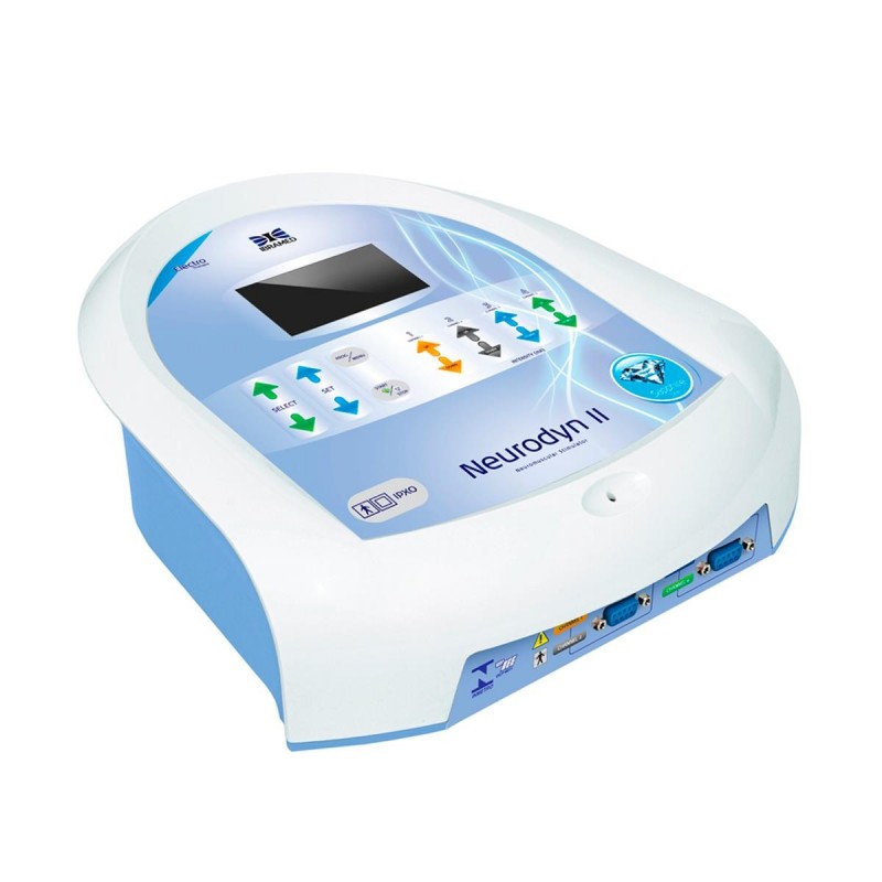 O Neurodyn II é um equipamento para aplicação de corrente elétrica via eletrodos em contato direto com o paciente para terapia de disfunções neuromusculares com as correntes TENS, FES e Russa e conta com quatro canais com ajuste de intensidade independentes, possibilita a escolha de parâmentros, entretanto, ofere programas de terapias pré-determinados para facilitar os atendimentos.