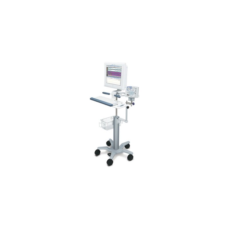 A grande tela de 17 polegadas, sensível ao toque, permite uma operação intuitiva. A altura do carrinho pode ser ajustada para garantir o melhor ângulo de visão. O desenho permite que o equipamento seja usado mesmo nos limitados espaços disponíveis na UTI e UTI neonatal.