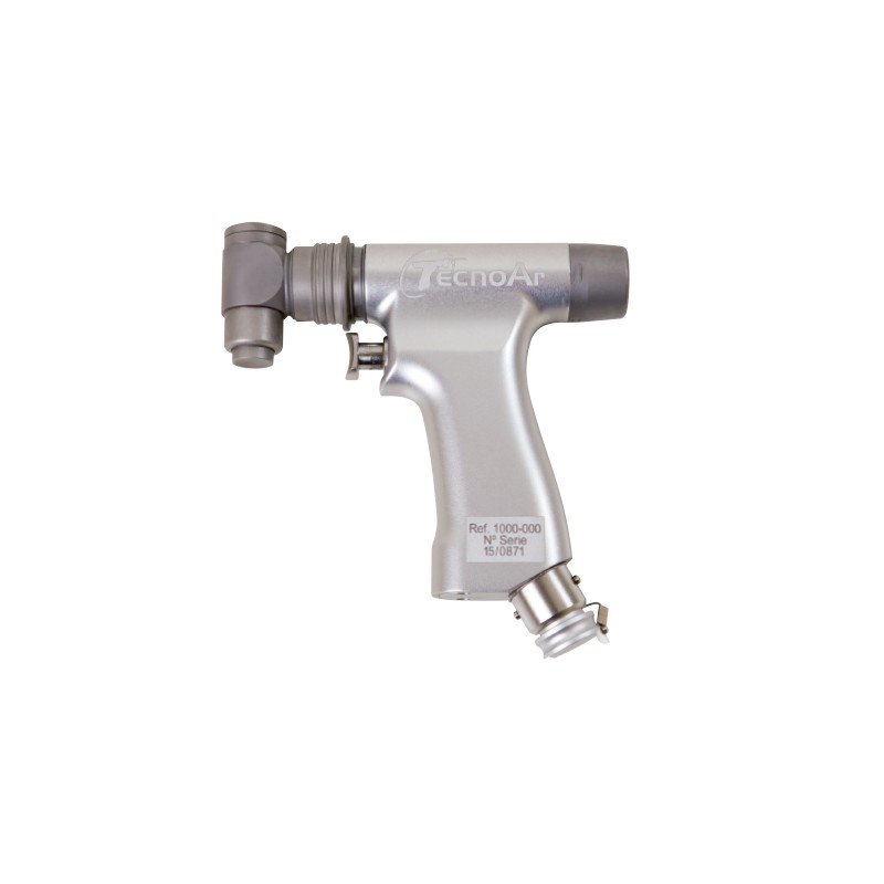 Projetado para uso hospitalar em cirurgias ortopédicas e cardiológicas, de empunhadura anatômica, com 12 posições de ângulo da serra, confeccionado em material leve e resistente, cabo de alumínio anodizado duro, cabeçote em aço inox, com rolamentos e todo o sistema de transmissão em aço inox, turbina motora de 24.000 RPM com acionamento progressivo através de um gatilho deslizante no próprio cabo, com sistema de trava de segurança. Funciona com nitrogênio, ar medicinal e ar comprimidos