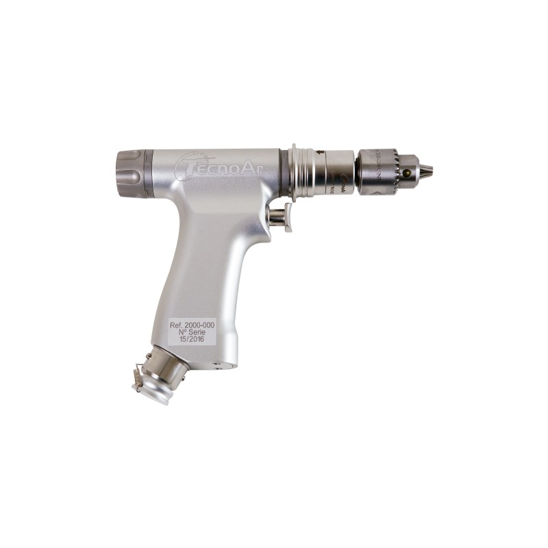 Projetado para uso hospitalar em cirurgias ortopédicas e procedimentos cirúrgicos nos orifícios do tecido ósseo, com utilização de vários tipos de brocas ou trefinas, fresas e raspas de ação giratória para preparo de cavidades ósseo-cartilaginosas esféricas. Podendo ser usado também para introdução e extração de pinos e fios lisos ou com roscas. Possui canulação de 4,5 mm, botão para controlar rotação de sentido: horário, anti-horário e neutro. Empunhadura anatômica confeccionada de material leve, 800g e resistente. Cabo em alumínio tratado com anodizado duro, rolamento e todo sistema de transmissão em aço inox, Funcionamento com nitrogênio, ar medicinal e ar comprimido, autoclavável a 134º graus.