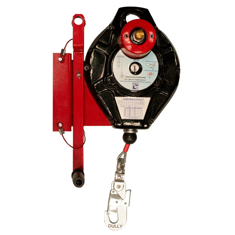 É um equipamento de segurança para trabalhos em espaços confinados com massa de até 100 kg, possui cabo de aço retrátil, dotado de sistema de auto travamento, dispositivo de amortecimento para dissipação de energia no caso de queda do usuário e guincho – sobe e desce – com frenagem automática quando da parada de movimentação de sua manivela durante os trabalhos de resgate.