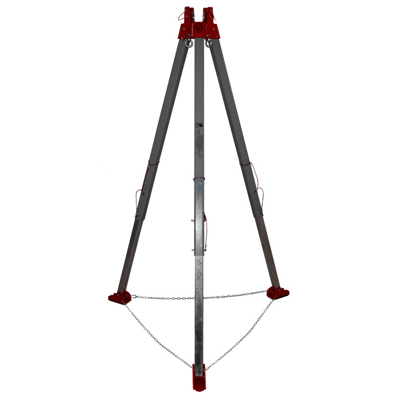 Tripé para espaço confinado quadrado, com regulagem mínima de altura 1700 mm e máxima de 2300 mm. Utilizado por exemplo, para resgate e sistema de acesso em locais limitados.