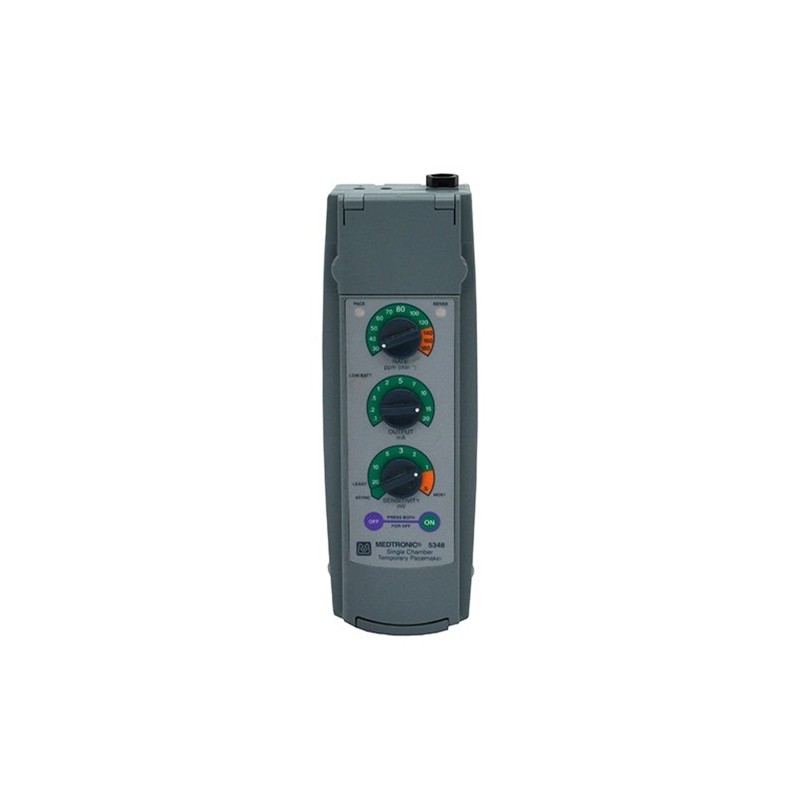 O Marcapasso Temporário de Câmara Única Modelo 5348 da Medtronic e o Cabo do Paciente Modelo 5433A ou 5433V. O dispositivo funciona com uma bateria alcalina de 9 volts ou bateria de lítio, que é instalado em uma gaveta de bateria na extremidade inferior do marcapasso.