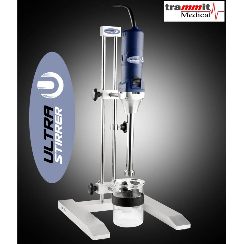 Homogeneizador mecânico de tecidos, moldado em plástico rígido com pintura epóxi resistente a respingos, com velocidade variável até 29.000 RPM, podendo ser operado manualmente ou sobre um suporte (base para uso em bancada)
