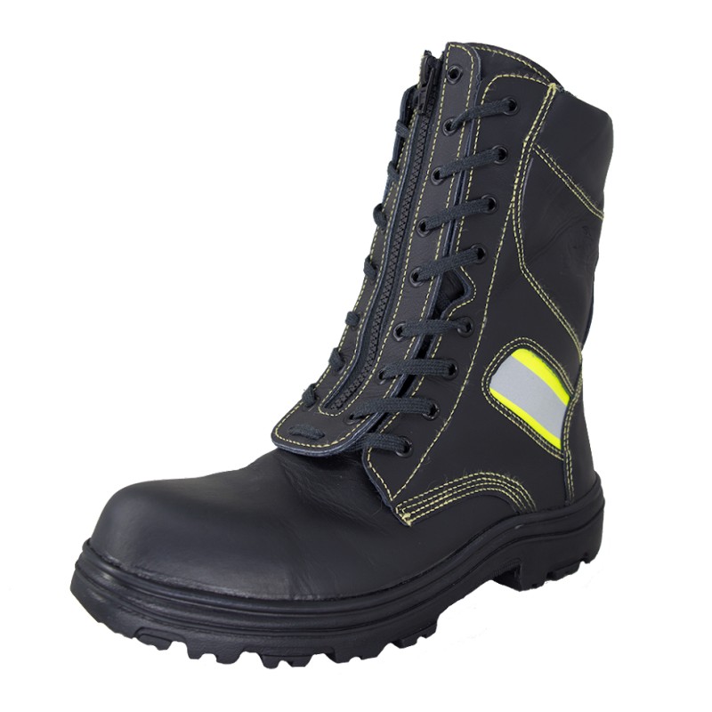 A Trammit disponibiliza uma linha de Coturno de segurança para Bombeiro e todos profissionais de segurança única e exclusiva com fechamento em cadarço e zíper possibilitando o calce rápido, confeccionado em couro antichamas hidrofugado, com forração interna em membrana a prova d’água, ilhós em latão, refletivos e solado borracha colado.