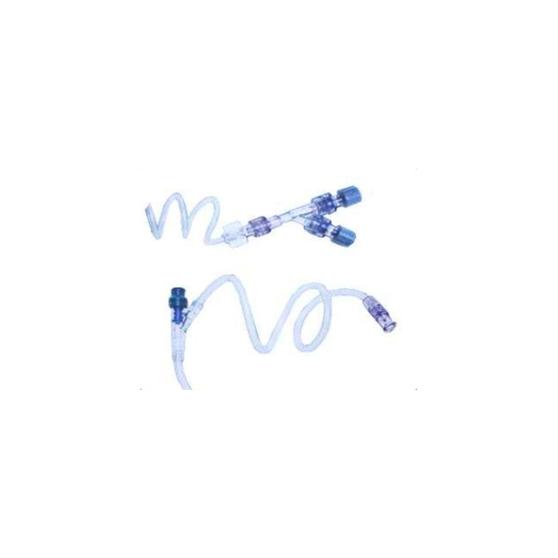 O Extensor em Y Espiralado 180 cm com 02 válvulas anti-refluxo nas extremidades é indicado para bomba injetora de contraste com duas cabeças. (até 300 PSI)