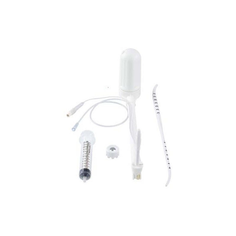 Seu peso leve permite que, ao ser movido, libere as mãos do cirurgião e elimine a necessidade de um assistente. O kit contém 1 espaçador, que ajusta o comprimento da ponta em 1 cm e otimiza o encaixamento e o dimensionamento do manipulador, 1 sonda dilatora, 1 seringa e 1 manipulador.