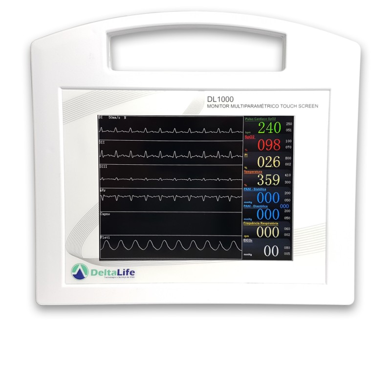 O Monitor Multiparamétrico DL1000 é um Touch Screen de alta resolução.
