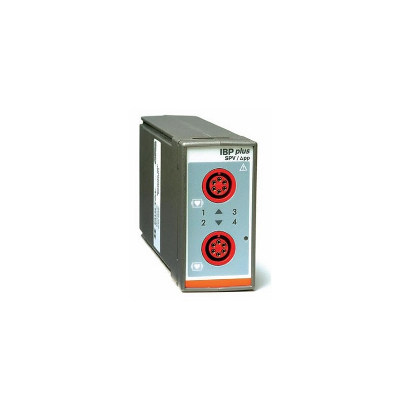 Módulo IBP de Pressão Invasiva de 02 Canais (IBP Plus), com indicação das pressões sistólica, média e diastólica. Identificação do canal de pressão utilizado: PAI, PVC, PAD, PAE, PAP, PCP e PIC. Mensuração de: Variação da Pressão de Pulso em %, a variação da Pressão Sistólica (SPV) em mmHg, o delta up em mmHg e o delta down em mmHg. Sincronismo com detecção de QRS. Compatível somente com DX-2020 e DX-2021.