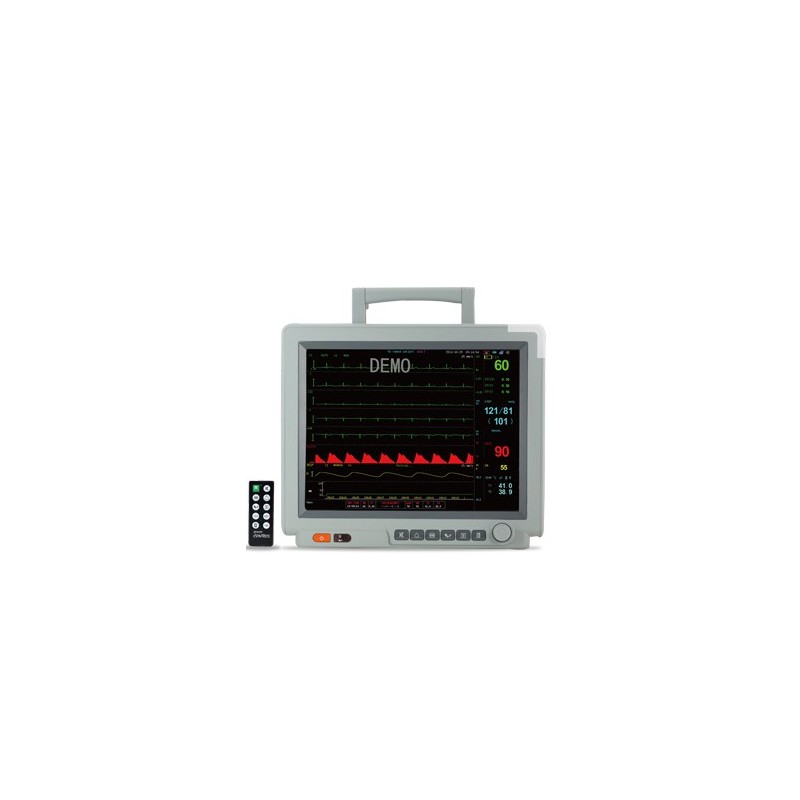• Taxa Respiração por Sonda Nasal (T-Resp) e/ou Bioimpedância Respiratória Transtorácica (Resp). Traçado com ganho automático. Detecção de Apnéia com tempo programado. • Calculador de medicamentos Incorporado. • Tela em TFT LCD (cristal líquido) colorido de 15”. Opcional touch screen. Resolução 1024×768 pixels. Formato de telas e tamanhos de números programáveis pelo usuário, velocidade de varredura ajustável. Congelamento e gravação da tela, apresentação dos últimos 15 seg antes do congelamento, histórico de alarmes (prioridade alta, média e baixa). Tela de Oxy-CRG, seleção de cores para cada parâmetro, apresentação de números extra grandes, identificação de paciente. • Apresentação de 12 curvas de onda simultâneas, (configuração básica) de todos os valores numéricos medidos. • Alarme visual e audível com limites programáveis para todos os parâmetros monitorados (indicação visual e sonora). Indicação sonora de QRS programada. Alarmes visuais segundo a NBR IEC 60601-1-1-2-49. • Armazenamento de tendências de 360 horas e 60 eventos. Alarmes programáveis para todos os parâmetros medidos. Apresentação de tendências por gráficos ou tabelas. • Bateria recarregável de alta energia incorporada (06 horas). • Design para consumo de baixa energia com modo Stand by. • Uso Adulto, pediátrico e neonatal (selecionável). Manguitos para obeso, adulto, pediátrico, neonatal, coxa (descartáveis ou reutilizáveis). • Alça para transporte. • Controle Remoto Infra-Red. • Filtro contra interferências de ruído da rede elétrica, proteção para uso com desfibrilador. • Tensão de rede elétrica de 90 ~ 240Vac. 50/60HZ. Bivolt automático. • Idiomas disponíveis: Português, Inglês, Espanhol, Polonês, Francês, Chinês, Árabe, Russo, Italiano, Turco, etc. • Brilho de tela e volume ajustável. • Detecção de Marca Passo. • Sistema de auto teste, possibilidade de manutenção remota, Upgrade de software via computador • Proteção para uso simultâneo com desfibrilador. • Dimensões e pesos: G3L – 353x240x181mm 5,7kg – tela 15,0”. • Led indicador de alarme, led indicador de energia, led indicador de carga, alto falante, botão.