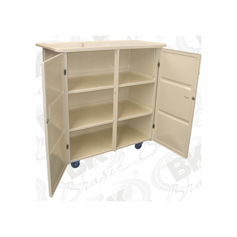 CARRO EM FIBERGLASS PARA TRANSPORTE - 02 PORTAS 03 PRATELEIRAS RODÍZIOS 04