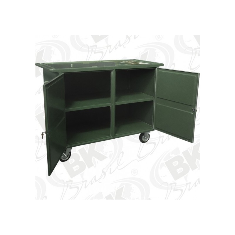 Descrição: Os Armários em Fiberglass para Transporte BK são totalmente confeccionados em fiberglass de alta resistência e durabilidade, com acabamento em gel coat isoftálico. Este modelo e constituído de gabinete de 02 portas, composto de tampo superior com alças integradas para transporte e 02 prateleiras internas. As portas são dotadas de sistema de fechaduras com chaves, e possui puxador confeccionado em aço inoxidável AISI 304.
