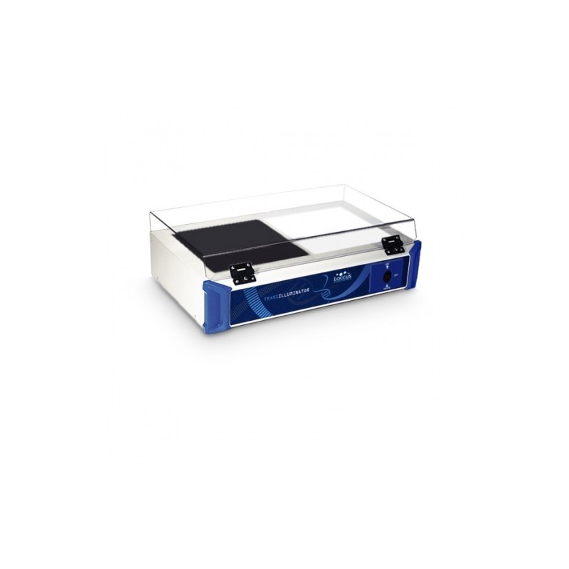 Transiluminador com 2 filtros de 20x20cm, um com luz UV-B e outro com luz branca;